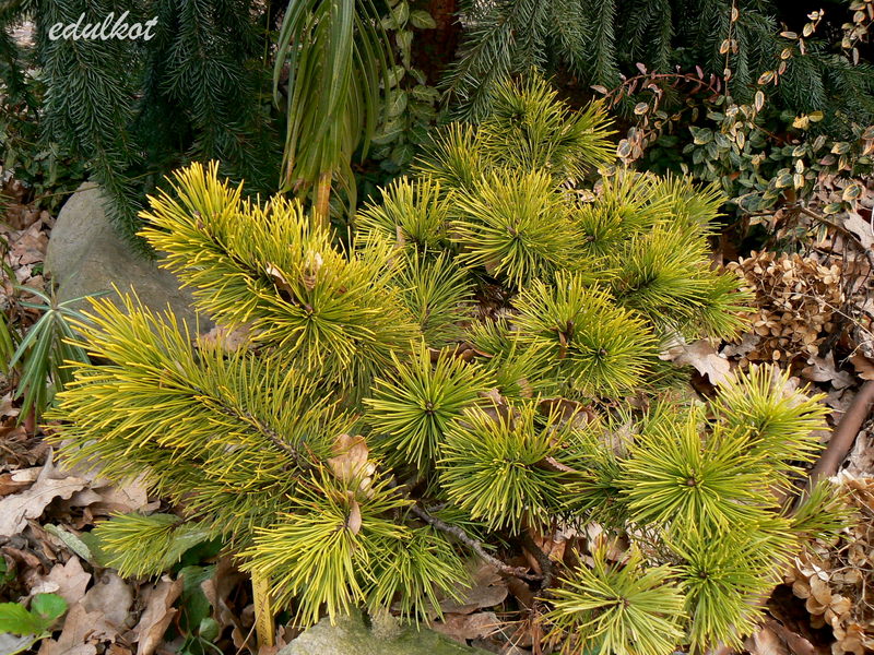 kupiona jako Pinus parviflora 'Ogon Janome' (sosna drobnokwiatowa 'Ogon Janome') ale podobno to jestinna: densiflora gęstokwiatowa „Oculus-draconis” albo parviflora ‘Shirome Janome’