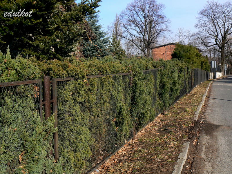 a od ulicy, od południa mam szpaler jałowców chińskich, bliżej młodsze ale ciągle sprawiające problemy, myślę o częściowej jego likwidacji, dalej stare 16-to letnie, już przycinane z góry i podkasane z dołu, a dzisiaj M. prawie połowę z nich bardzo mocno podkasał, aż zadrżałam jak to zobaczyłam, ale skoro zechciał cokolwiek zrobić to zmilczałam
