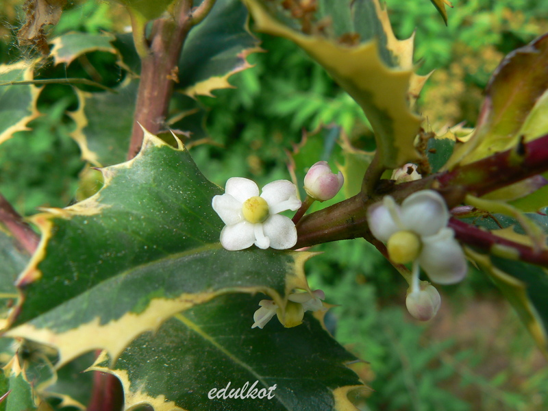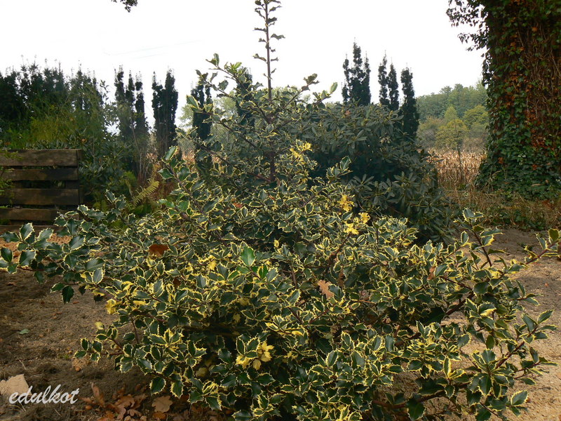 ostrokrzew - jakiś nn, bardzo powolutku rośnie, kupiony razem z nutkajem, lawsonem i limbą