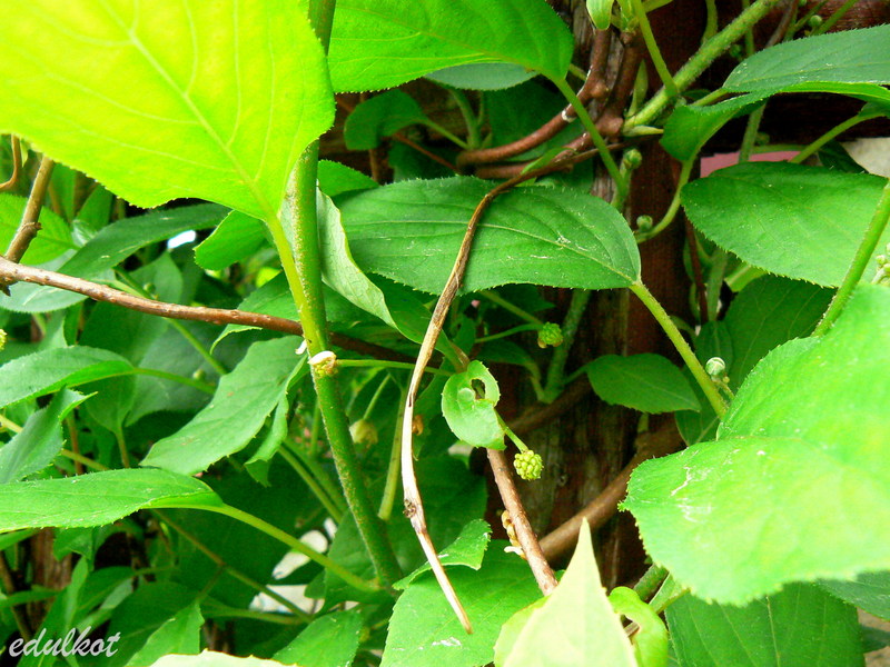 Niestety każdej zimy przemarzały, za to od korzeni wyrastało milion malutkich odrostów, straciłam cierpliwość bo oprócz owoców chciałam mieć zacienienia tarasu od zachodu więc w 2009 roku pomiędzy te cytryńce posadziłam aktinidię - kiwi, za rok tak śmignęła
