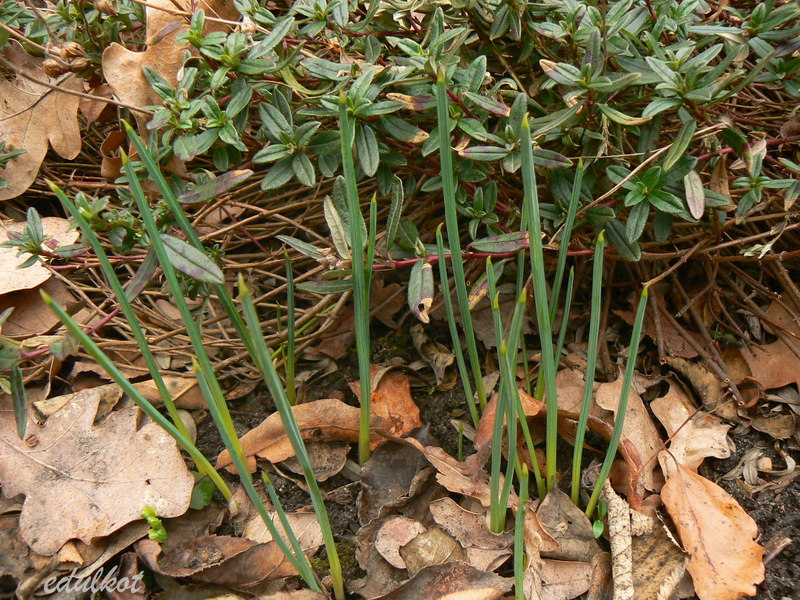 Cebulica Tubergena cebulica Miszczenki (scilla mischtschenkoana) robi się coraz wyższa, lada dzień zacznie rozwijać swoje kwiatuszki to co rośnie z tyłu