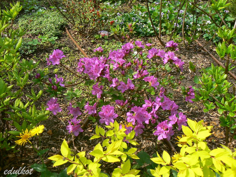z drugiego końca, różowa to niby Melina, z tego końca dosadzę po wykarczowaniu bukszpanów jeszcze dwie: Geisha Orange zwana Satschico i Purpuratum
