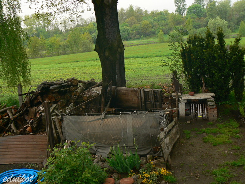 jeszcze bardziej w prawo czyli na zachód króluje klatka dla Mili ( jak koniecznie trzeba ją zamknąć, kiedyś pokażę jakie roślinki ona uprawia w środku