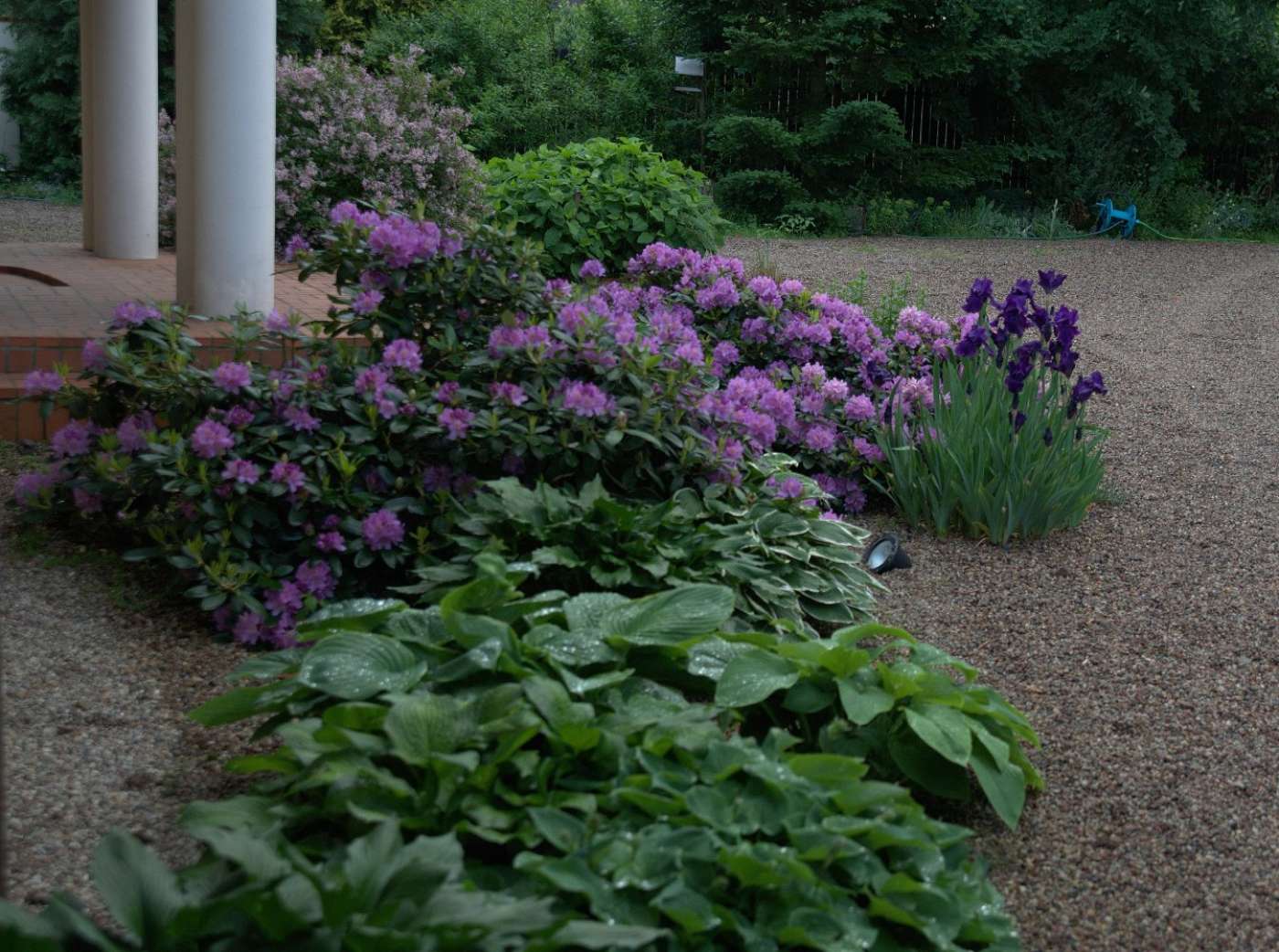 Danielo ! To połączenie wizualnie dobrze wygląda, a jest możliwe za sprawa domu ,który rzuca cień na hosty i rh , a irysy sa cały czas na słońcu