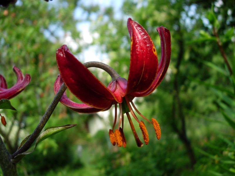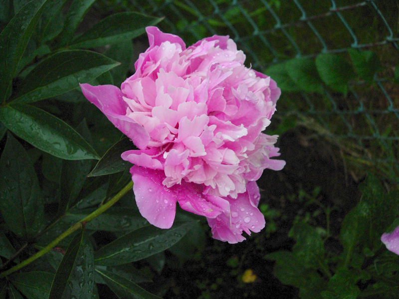 . To może być Sarah Bernhardt. Krzaczek już całkiem, całkiem. Pewnie w przyszłym roku będzie kwitł (w tym już chciał). Jest jeszcze jedna wiśniowa – pachnąca. Ta tworzy spory krzaczek, ale głównie z małych, krótkich kłączy. Zastanawiam się, czy tych kłączy trochę nie oddać, bo wiem już, że są zdrowe.