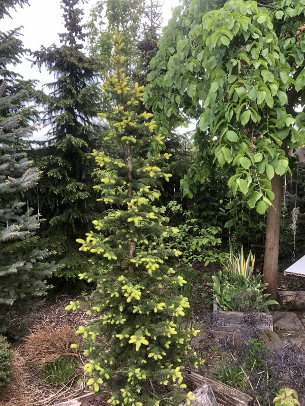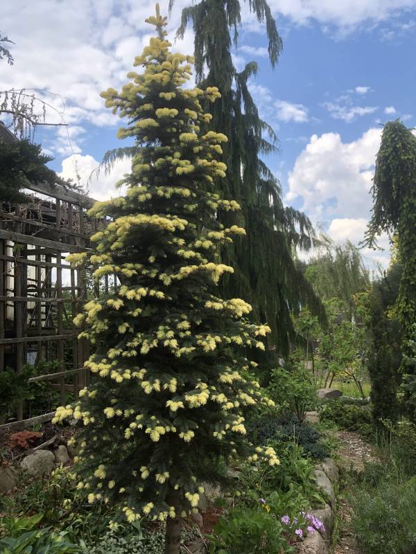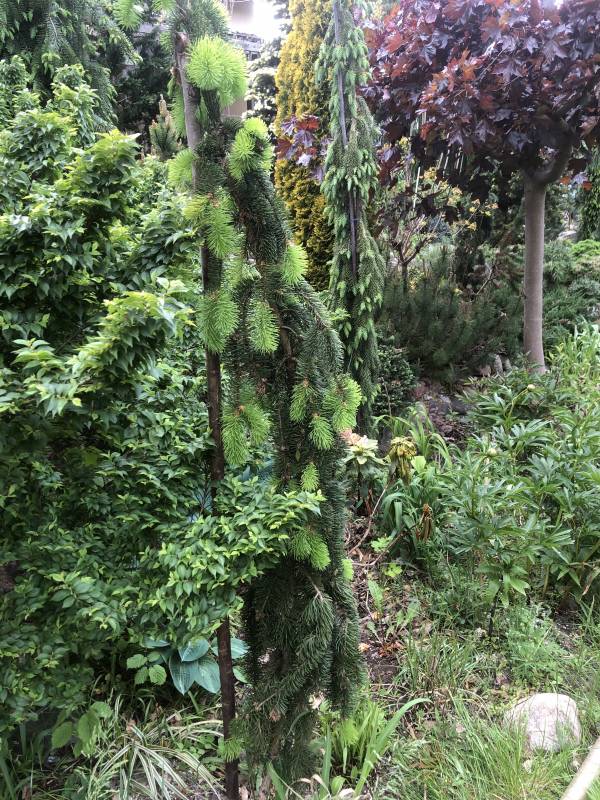 ''szkieletor'' to buk Purpurea Pendula prowadzony kilkanascie lat przy coraz dłuższych ''patykach'' - zapamiętał jak ma sie zachowywać i przewodnik rwie się do góry ale jak powiadają uczeni prędzej czy później każdy opadnie zapewniam że nie jest to Purple Fountain bo takowe dwa młodsze mam obok