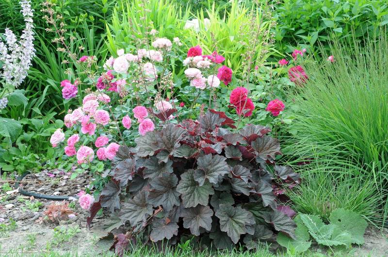 a ta żurawka chyba ma ambicje przesłonić róże