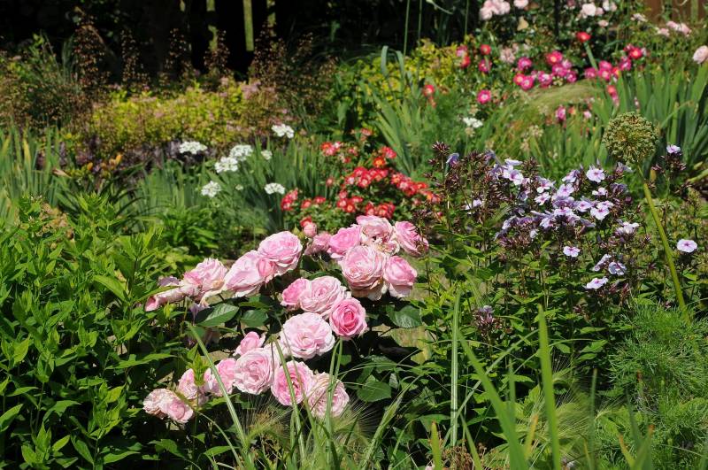 . Ale prawie tyle samo liliowców i floksów, a niewiele mniej lilii, więc może róże jakoś nie wybijają się na pierwszy plan