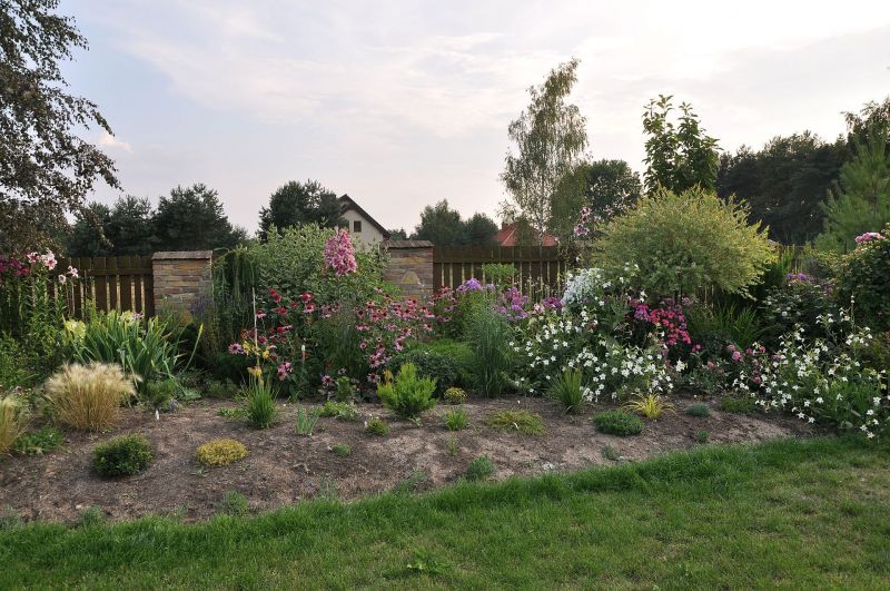 Od jakiegoś czasu szukałam drzewa w miejsce dwóch wypadłych budlei pod płotem, o tutaj, mniej więcej w centralnej części fotki obok słupka