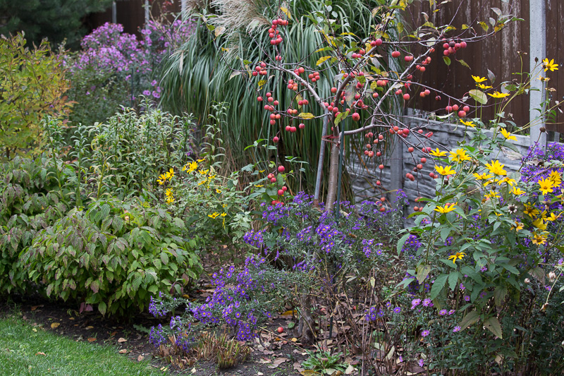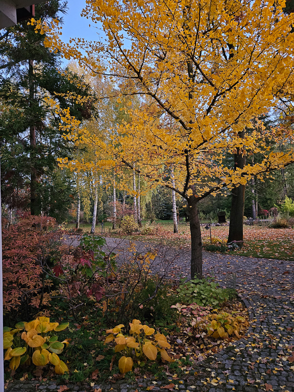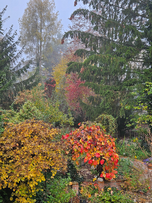 Liście z drzew zaczynają już masowo spadać, ale u mnie nie było jeszcze mrozu, więc nastrój nadal się utrzymuje i nawet coś tam jeszcze kwitnie.