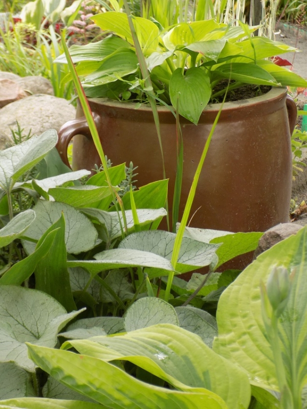 Zauważyłam wśród host jedną rosnącą w glinianym tzw buncloku i w związku z tym mam pytanie: czy masz tam jakieś otwory w dnie, a jeżeli tak to możesz zdradzić jak to zrobiliście?