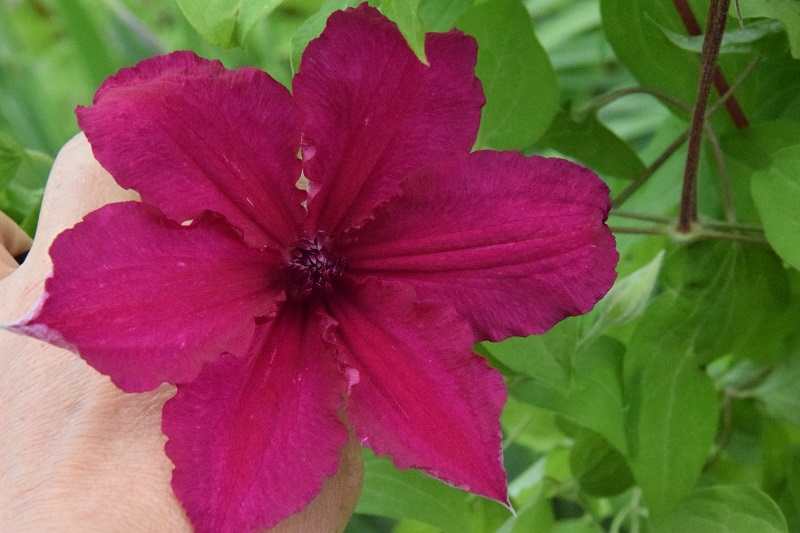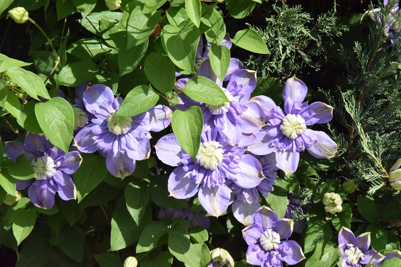 powojnik 'Beautiful Bride' niemal w pełnym rozkwicie