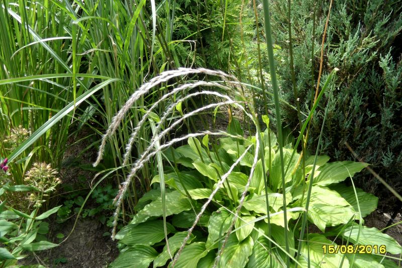 Ogłaszam, że palma pierwszeństwa w tym roku wędruje do miskanta... Champagner. Nawet nie zauważyłam, kiedy się wykłosił, bo po nim zupełnie się tego nie spodziewałam :blink: . Kupiłam go w zeszłym roku, prawie umarł zimą - pierwsze kłoski wypuścił ok. połowy czerwca, po czym na początku lipca zmieniłam mu miejscówkę :oops: . Tak więc zaskoczył mnie bardzo :woohoo: :