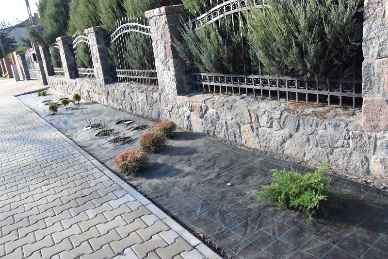 A po wewnętrznej stronie ogrodzenia co to za krzewy? mają piękny, regularny pokrój.