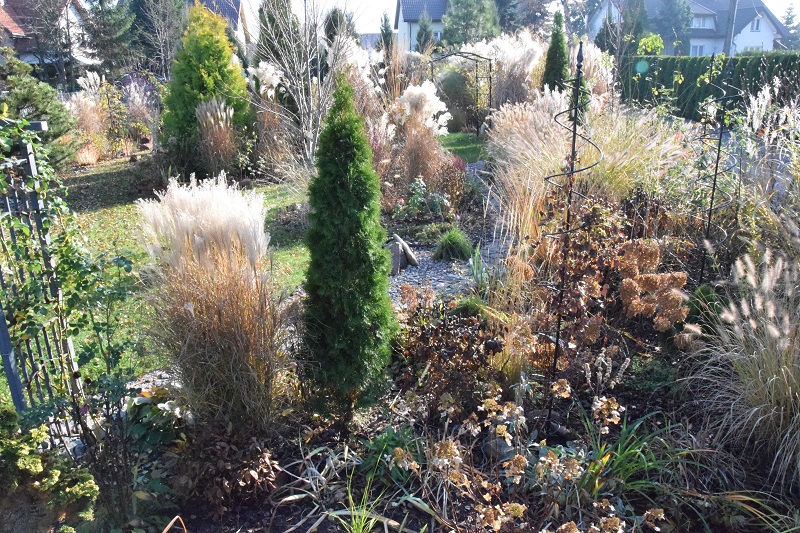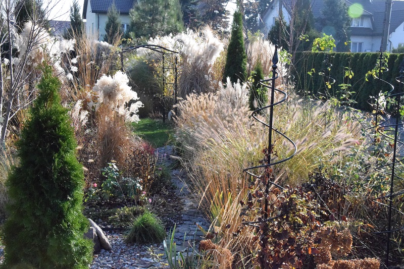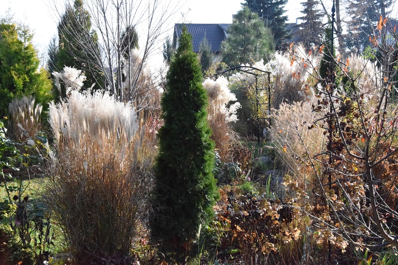 Planuję wypełnić te puste plamy trawami, które mogę zabierać w miarę powiększania się iglaków.