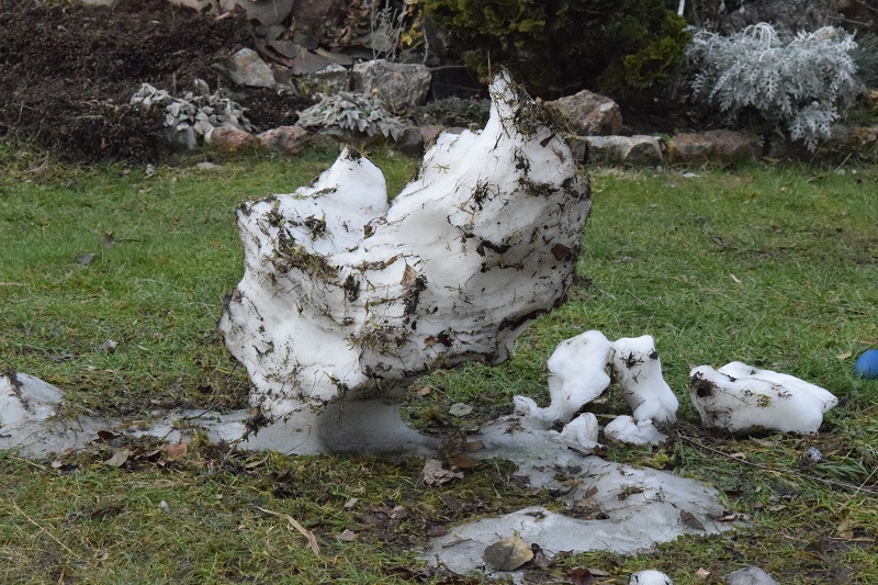 A tak ogród wyglądał dzisiaj. Z bałwana powstała malownicza rzeźba ;):