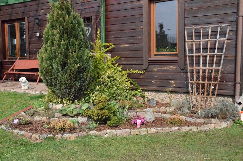 Posadziłam go blisko drogi i altany, aby był odpowiednio wyeksponowany i miał dość miejsca na rozrastanie się. Ponieważ teren w tym miejscu jest dość wilgotny (podejrzewam ciek wodny) dostał wyniesiony ponad rabatę obwódką z kamieni. Mam nadzieję, że będzie mu tu dobrze i że będzie rósł zdrowo i kwitł obficie :lol: :