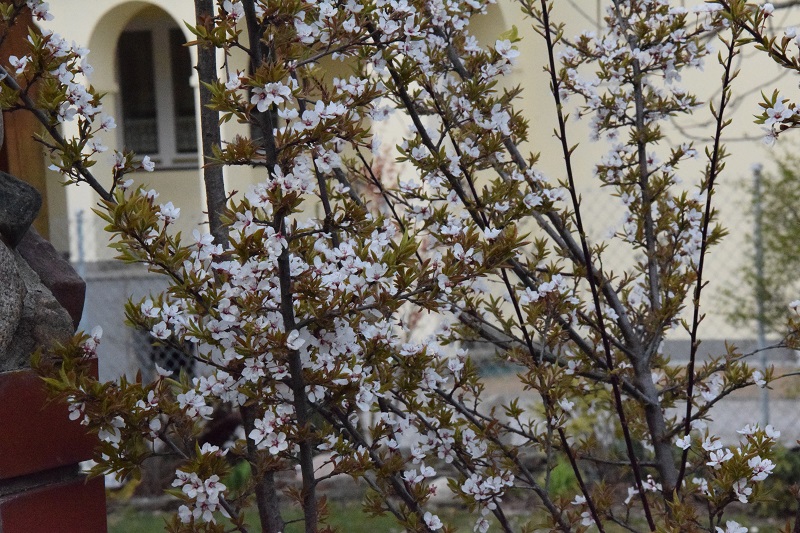 Miłko, ochłodziło się, to i magnolie postanowiły zaczekać. Za to dereń pagodowy Variegata już w pełnej gotowości: