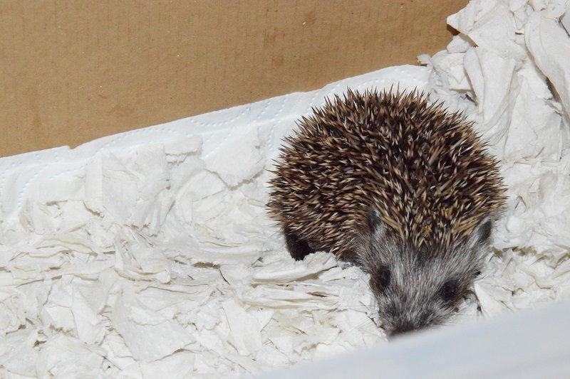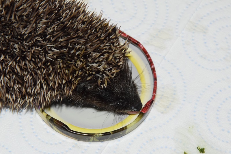 Najsłabszy jeżyk (który od początku słabo rokował) od wczoraj też zaczął jeść samodzielnie, ale nadal się przewraca w trakcie poruszania. Weterynarz zrobił kroplówkę i podał antybiotyk, ale więcej się nie podjął. Podejrzewa zaburzenia neurologiczne. Jeśli maluch nadal będzie się poprawiał, będę musiała poszukać dla niego specjalistycznej pomocy.