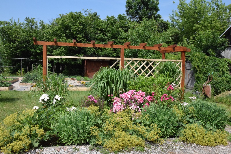 W ogrodzie też pięknie. Jeżeli podoba Ci się jasna pergola, to tak zostaw. Fajnie kontrastuje z ciemniejszą górą.