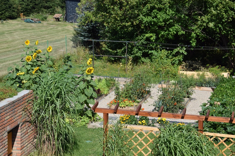 Może jeszcze pokażę widok z góry na teren za domem. Lubię ten widok rano. Zanim ogarnęliśmy warzywnik był tam spory bałagan: