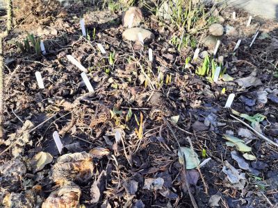 W sobotę 7 marca bardzo mnie korciło sprawdzić cebulki lilii. Ziemia rozmarzła i koniecznie musiałam się przekonać, czy kilka odmian przetrwało zimę. Rozkopałam ziemię wokół znaczników i z ulgą mogę powiedzieć, że tak. Te kilka odmian, które sprawdziłam przetrwały zimę.