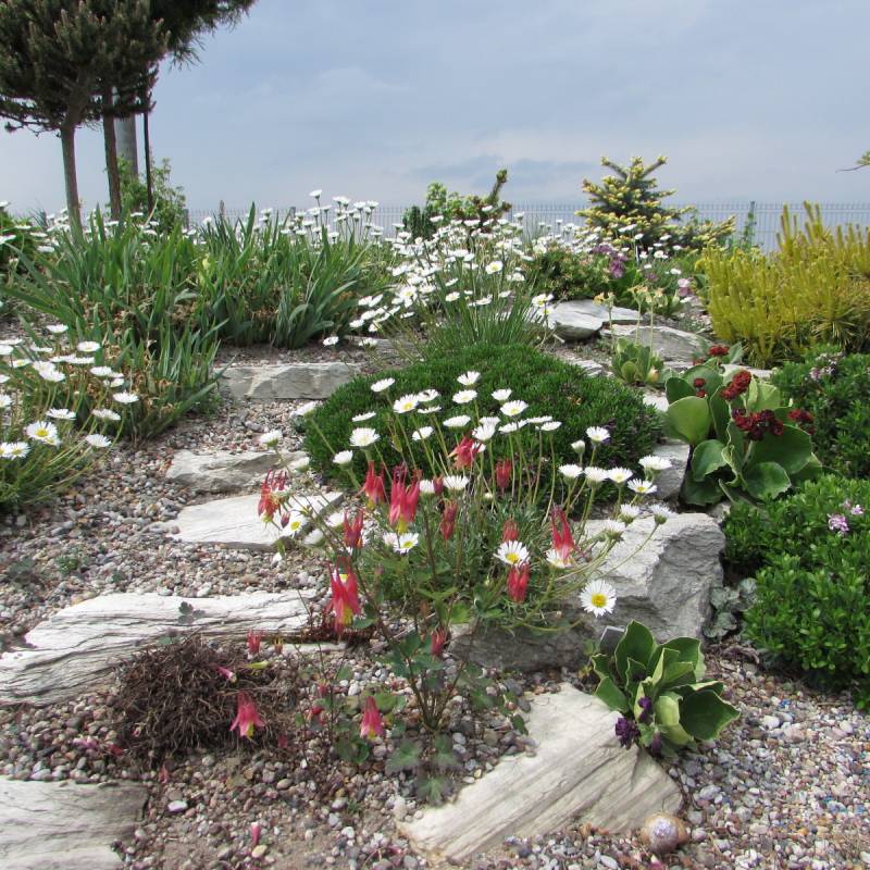 Kamienne ścieżki wśród kwiecistych rabat
