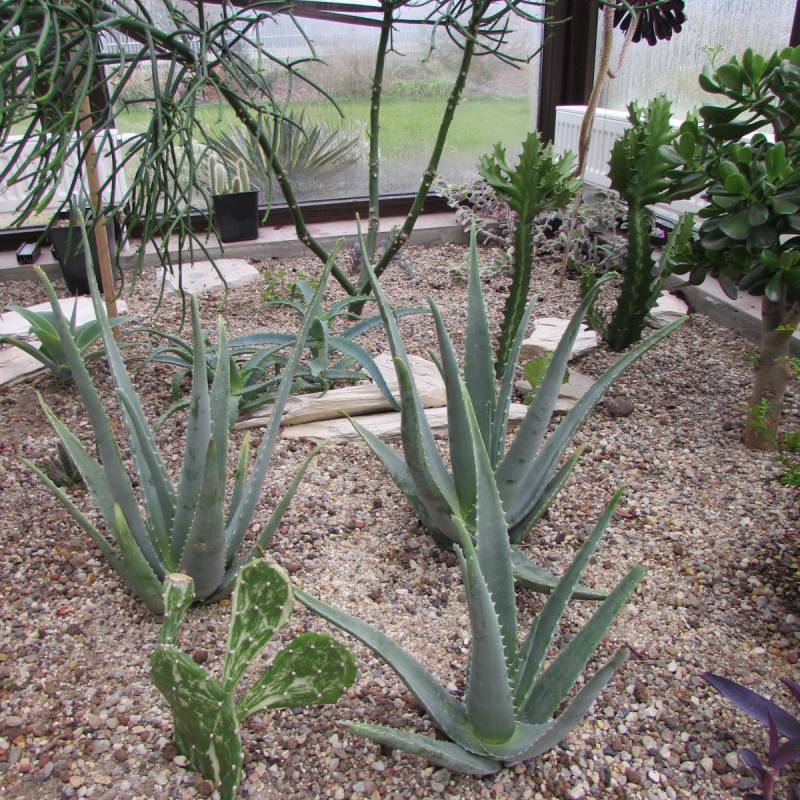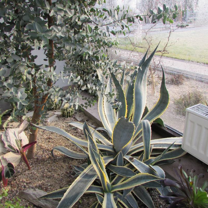 Majeczko, w ogrodzie zimowym mam mało kłujących, przeważają agawy, aloesy, grubosze, portulaki, wilczomlecze. Opuncje są z tych mało kolczastych. Przerobiłam ogród na bezobsługowy, często wybywamy z domu na dłużej i latem był kłopot z wietrzeniem i podlewaniem. Z pierwotnych nasadzeń został tylko eukaliptus, strelicja królewska i kilka sukulentów, bowiem są to odporne rośliny i przeżywają upały i suszę.