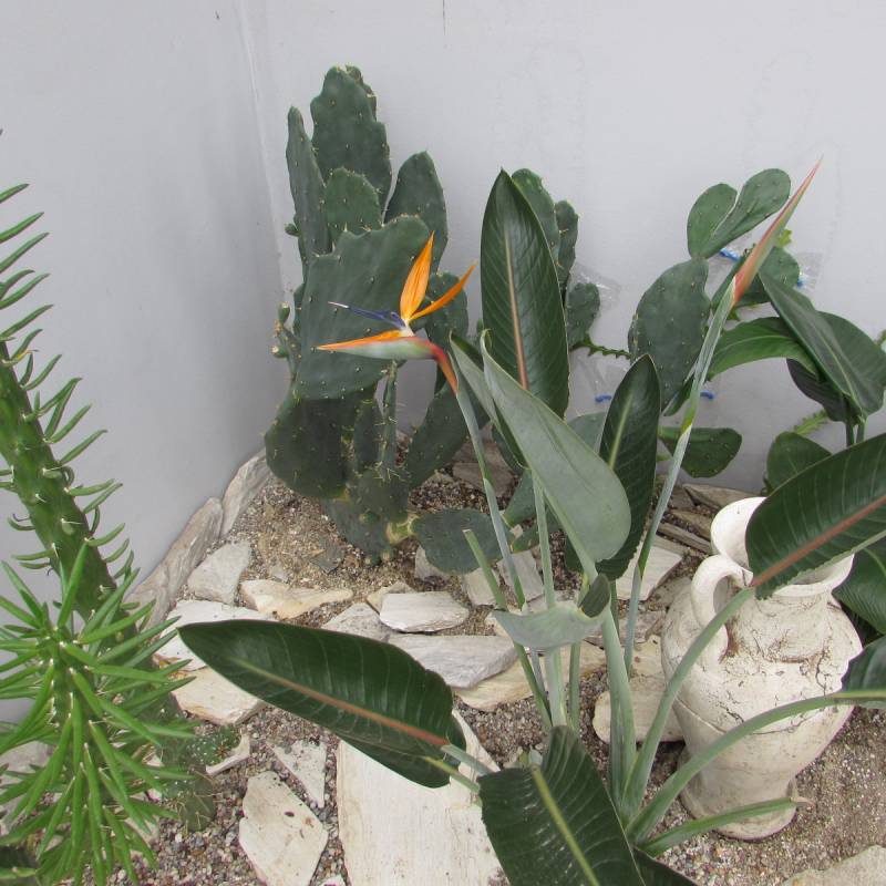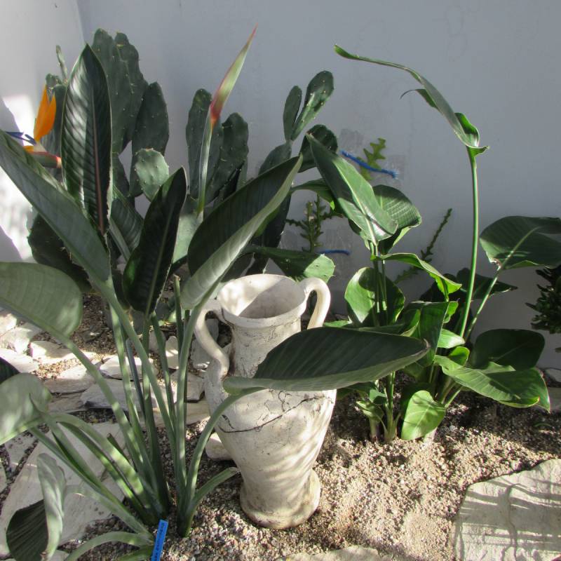 Wszystkie rośliny rosną w gruncie. Z nadmiarem wilgoci w podłożu nie mam żadnego problemu, ponieważ zarówno fundament jak i cokół zostały zaizolowane i ocieplone. Rodzimy grunt został usunięty, zrobiony solidny drenaż i dopiero nasypane odpowiednio przygotowane podłoże. Pomiędzy strelicją królewską a strelicją nicolai postawiłam surowa amforę, którą napełniam wodą i następuje powolne podsiąkanie do korzeni.