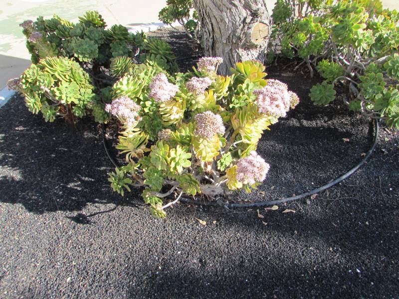 Mam ukorzenione eonium kwitnące różowo. Sadzonkę przywiozłam z Lanzarotte. Dostałam szczepkę od sympatycznego starszego pana, gdy poprosiłam o pozwolenie sfotografowania roślinki. Kiedy się upewnił, że nie jestem Hiszpanką tylko z Polski, nie tylko zaprosił do ogrodu ale widząc me zainteresowanie tą roślinką dał mi jej szczepkę.