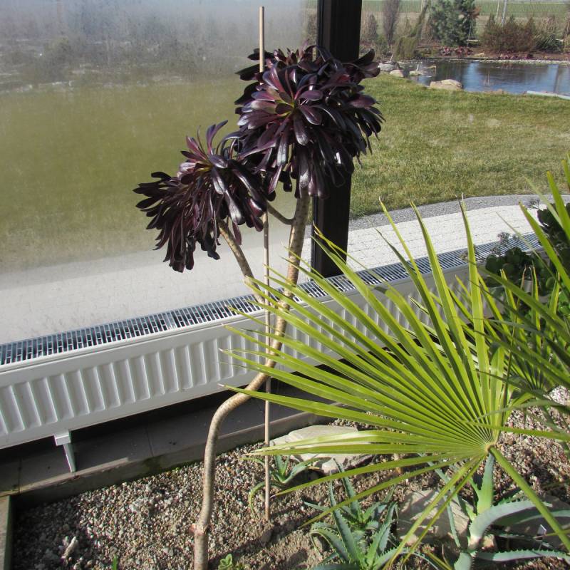 Aeonium arboreum "Schwarzkop" też jeszcze nie kwitło.