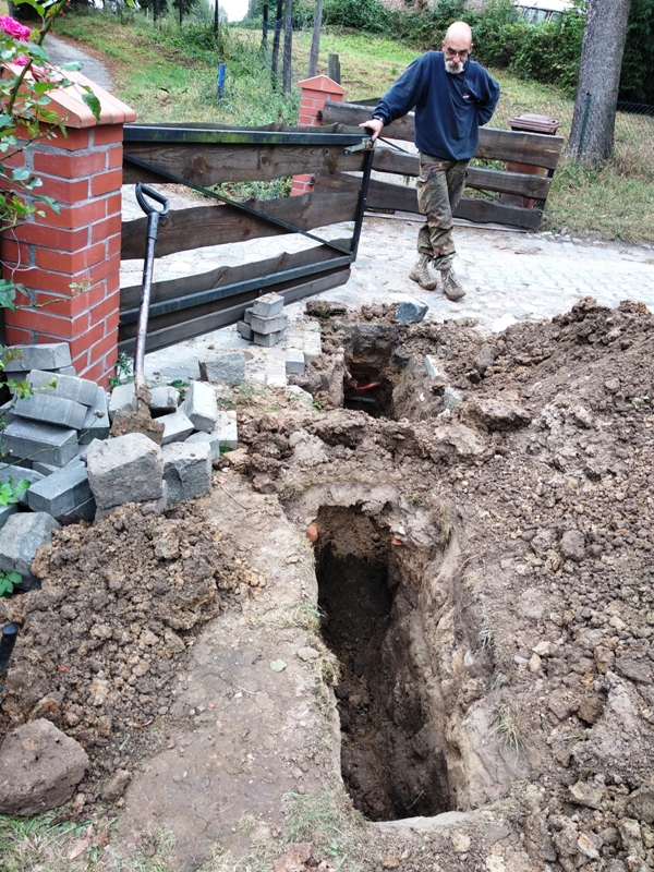 No, nie do końca z głowy, bo na razie ziemia w wykopie osiada i trzeba będzie potem kostkę znów na podjeździe ułożyć. Nawet mam fotorelację z całej akcji, ale niezrzucona z telefonu czdziura