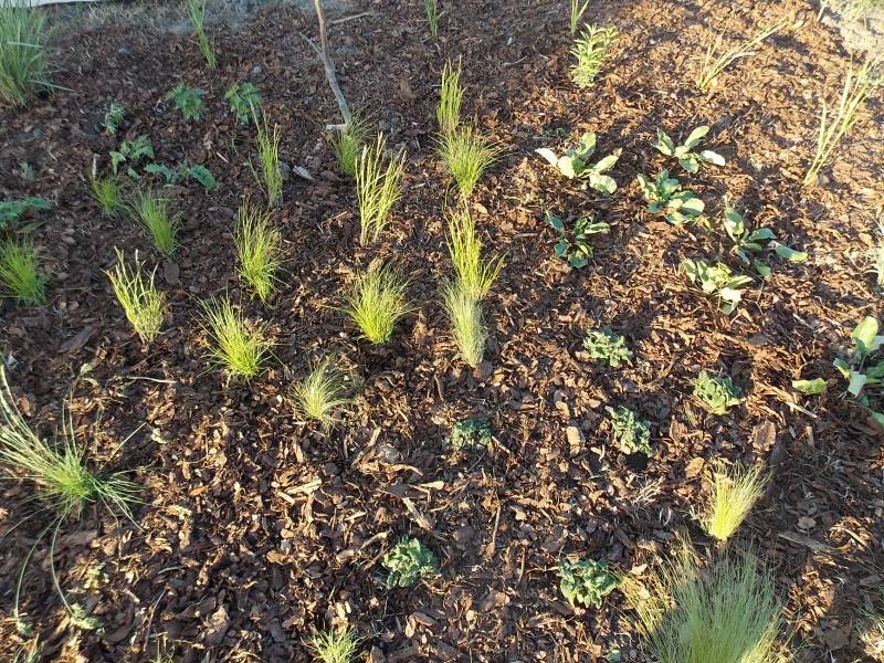 edit : na fotkach jest róg rabatki preryjnej, ona się ciągnie w lewo w kierunku nowej pergoli a w połowie pola w prawo (przecina pole ) za nią rośnie żywopłot grabusiowy, on zrobi robotę jak urośnie ... spadam....