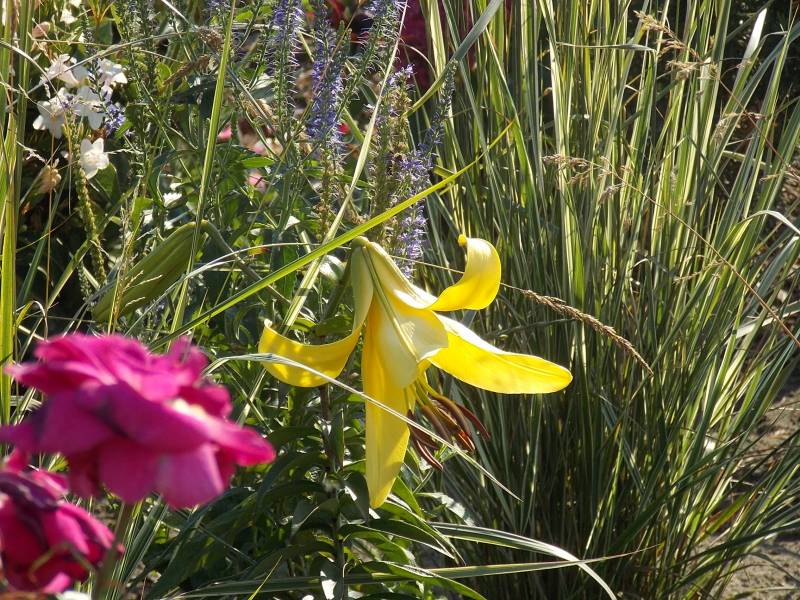 Zdążyłam wczoraj skosić przed deszczem, który padał aż do dzisiejszego poranka. Nie ma słońca, jest chłodnawo. I dojrzałam wczoraj pierwsze oznaki jesieni... Zaczynaja u mnie nachyłki okółkowe i dołączają różne jeżówki. Niektóre z róż w ogóle nie przestają kwitnąć np. Gruss an Aachen ( biała ), którą polecam i to bardzo :kocham Od soboty nie zrobiłam u mnie ani jednego zdjęcia, to dam sobotniego liliowca wink-3