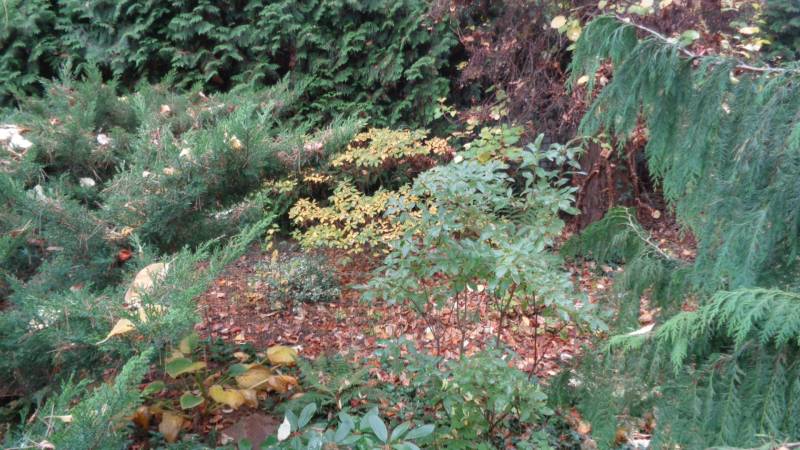 Liście spadają, było pięknie, teraz zrobiło się mokro i zaczną gnić, a tego momentu nie znoszę okropnie! Pocieszam się, że może jeszcze będzie kilka słonecznych dni. Muszę wygrabić trochę z bluszczu, bo w zeszłym roku kożuszek był za gruby.