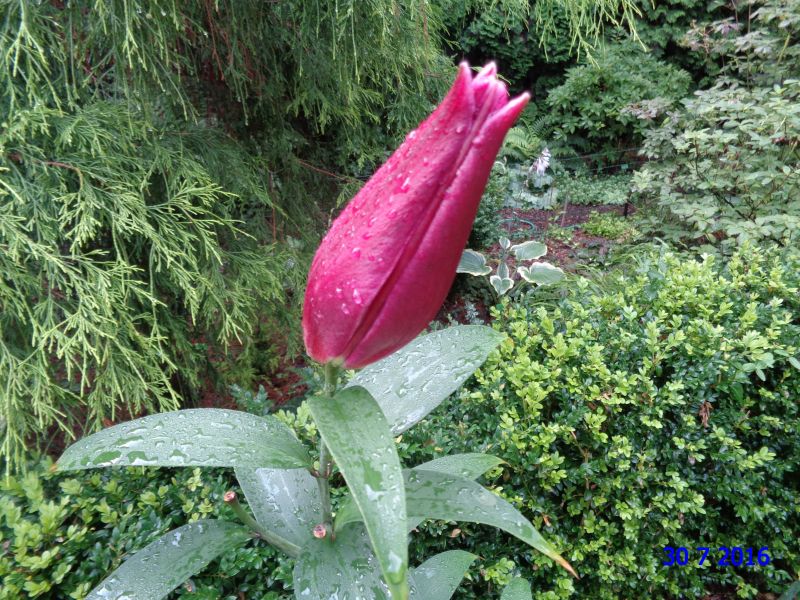 Czekam na zapowiadane wielkie deszcze /gradobicia i burze mogą sobie iść w czorty/, rozlałam po roślinach wodę z beczek i liczę na następną dostawę. Byle nie w nocy.