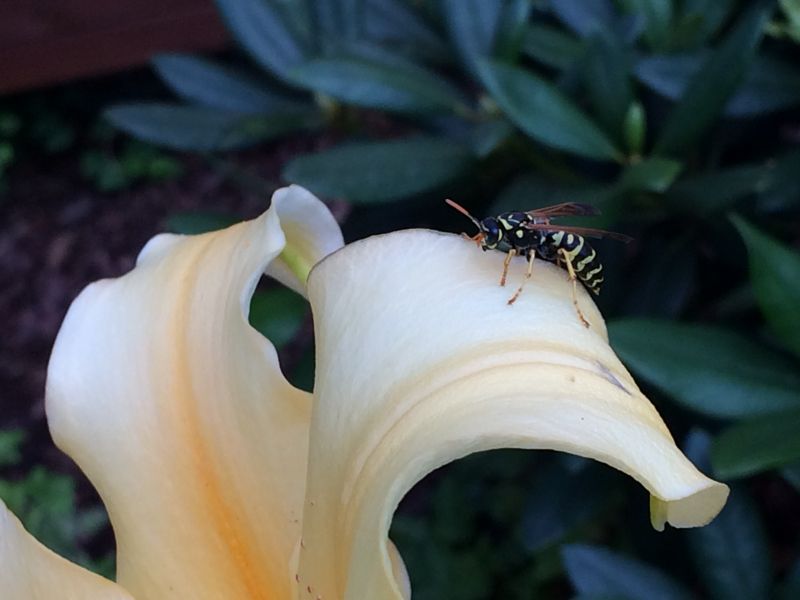 zauważyłam owada.. Pierwsza myśl- osa..ale tak obserwuję- coś duża.. Wpadłam w panike, że to szerszeń zdziwko Panicznie się ich boję- z bolącym od strachu sercem obfociłąm i sprawdzałam w googlach, jak z bliska szerszeń wygląda.. Ufff..to osa