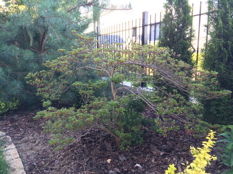 pigwowiec NN w tym roku też owocuje, chociaż skromnie. Dziwne, bo kwiatami zawsze obsypany i owadów pełno na nim siedzi. ROzlazł mi się w tym roku strasznie i muszę go zmusztrowac cięciem..muszę tylko doczytać kiedy- ale coś podejrzewam, że za rok po kwitnieniu powinnam to zrobić think: