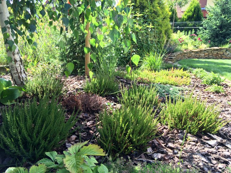 Wrzosy mam w różnym czasie sadzone. Najstarsze kępy z lata 2014r, najmłodsze są od ubiegłego roku. Rosną na stanowisku południowym, cień dają im brzozy.