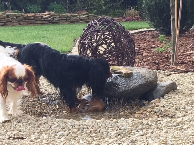 Dziś w ciągu dnia pogoda pięknie dopisała, siedzieliśmy sobie na tarasie, ciurkadełko chlupotało, psiaki co chwile piły..