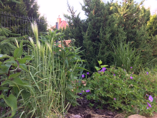 ależ ta trawa jest fotogeniczna!! W tle bodziszek Rozanne- najcudowniejszy bodziszek moim zdaniem! Jak zacznie kwitnąc w czerwcu to nie daje za wygraną aż do pierwszych przymrozków!