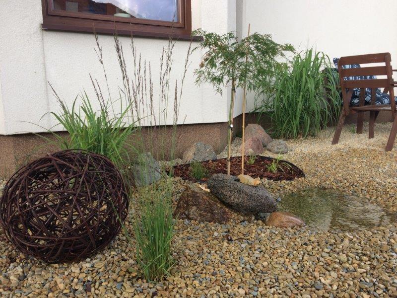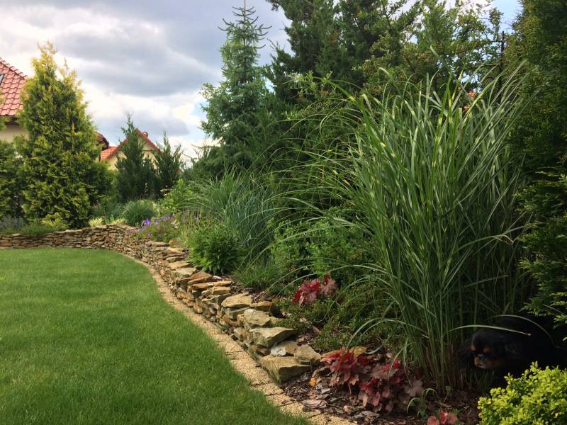 Z drobnych zmian..pojawiła się nowa trawa nad ciurkadełkiem.. Hakonki rosły na widoku i ciągle były podbryzane przez moje dwie kozy.. Przesadziłam je głębiej, żeby tak nie kusiły, a w ich miejsce pojawiła się molinia o dzwięznym imieniu Edit Dudszus