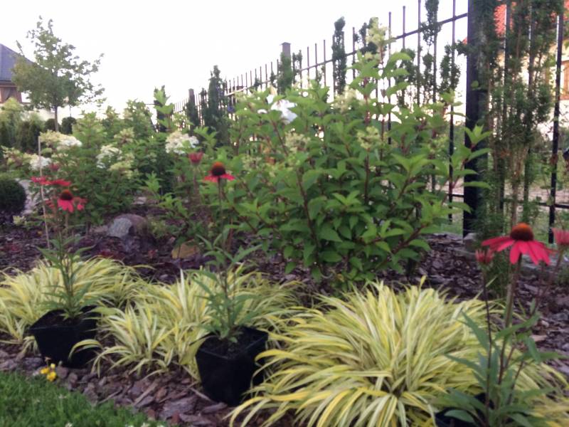 na razie przytargałam tam hakonki, żurawki i tawułki. Rozważam dorzucenie jakiś anemonów dla jesiennej ozdoby. Jkos wolno w tym roku myślę