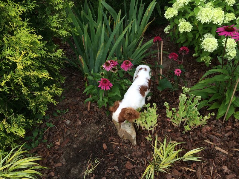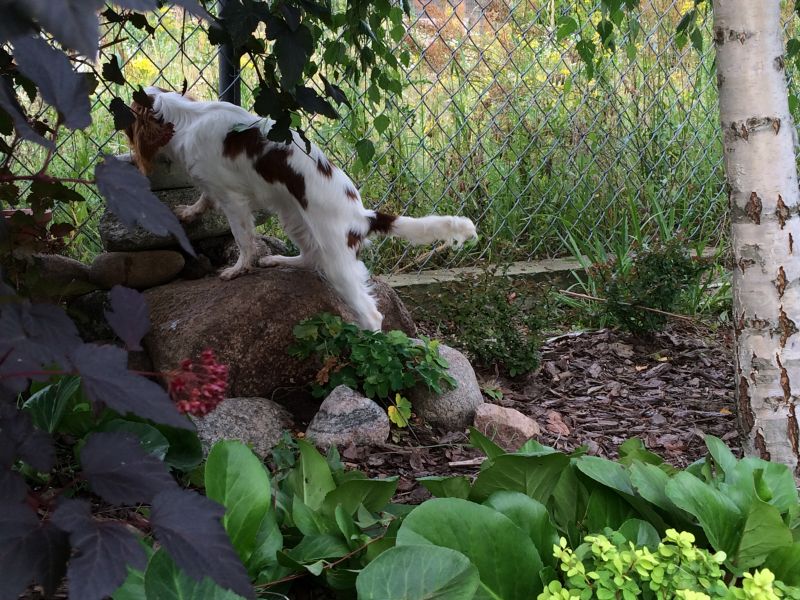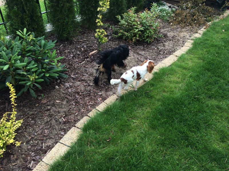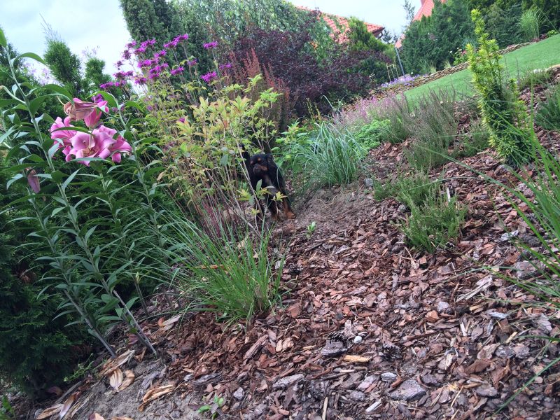 Maluch chodzi za Cygusiem, więc trasy chyba zostaną bez zmian. Zdeptana hakone koniecznie do przesadzenia- koncepcja pagórka musi uwzględnić dziurę w nasadzeniach- główne miejsce lądowania na pagórku