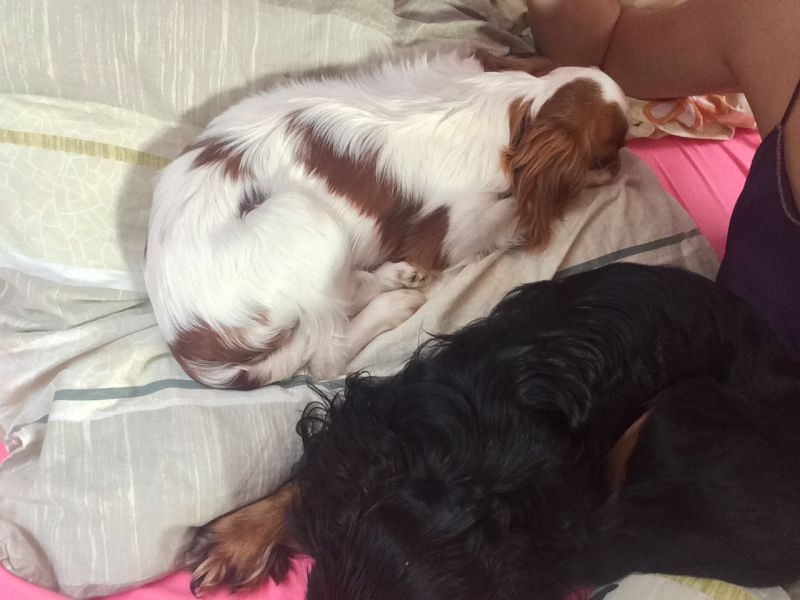 P pojechał już do pracy, a mnie obudziło szczekanie Cygusia.. Psiaki miały ustawione legowiska przy szafkach nocnych, a Cyguś oczywiśćie w nocy zameldował się do łóżka. Rano Marviś usiadł przy łóżku i kwękał, a Cyguś obszczekał bo z wysokości poduszki