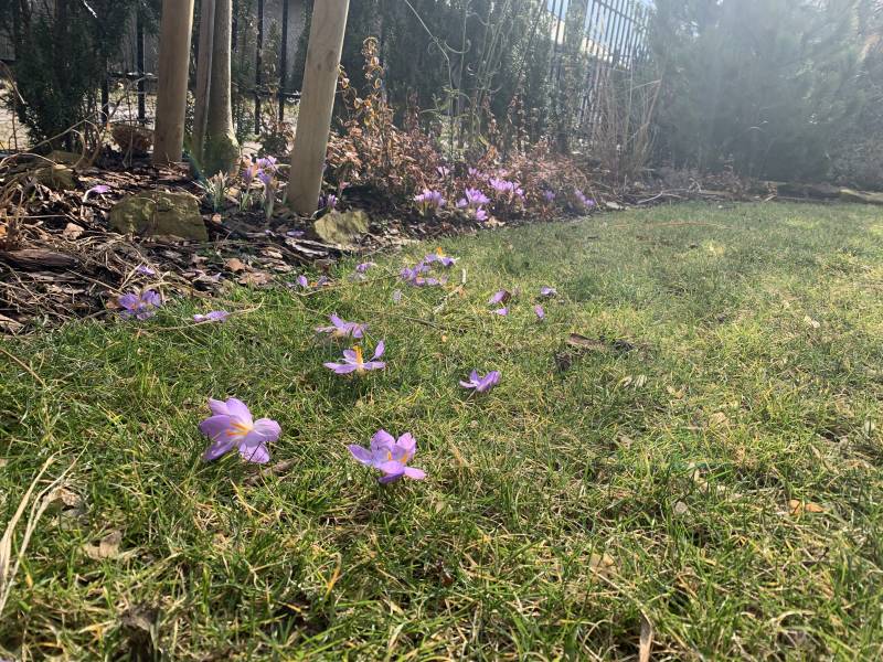 Kolejnego dnia pokazało się slonce, krokusy się uroczo otworzyły.. i moj rodzony mini- sekator ruszył w teren,.l Nie, to nie są krokusy rosnące w trawie,,
