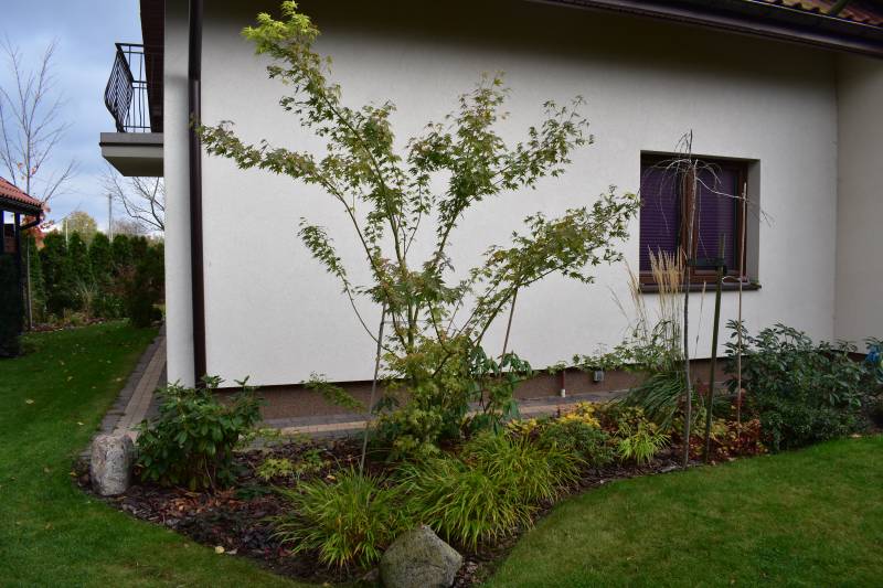 No wiec.. pomyślałam, ze z tylu pod płotem jako tło dla azalek, posadzę trzy trzcinnik. One wcześnie startują, półcień dla nich ok..szybko zrovia mi fale na tle ciemnego ogrodzenia..i nadadzą troche lekkosci rabacie, wypełnionej kwasolubami.