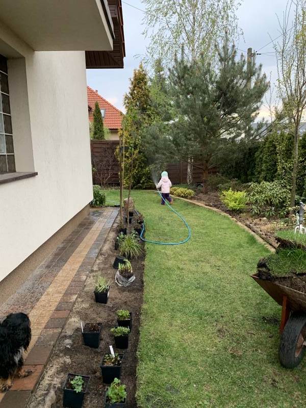 Bardzo jestem ciekawa efektu, mam nadzieje, ze trawki dadzą tam sobie radę. Uznałam, ze w ten monumentalny zakątek z wielkimi tujami, kanzanką, azalkami..przyda się odrobina trawiastej lekkości.