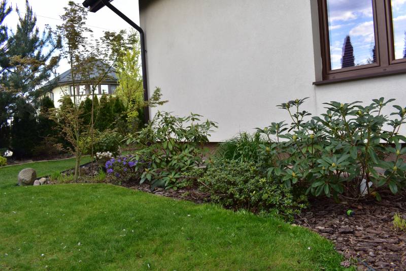 Z wrzosowiska wyprowadził się Palibin..to już jego trzeci adres u mnie.. może ten będzie ostatni. W lewo od niego molinia Dauerstrahl, druga przeprowadzka w tym roku.. ledwo ją widać, bidule.. Palibin tez będzie bardziej widoczny, jak zakwitnie.. ale mest, mest..widać po pniu.