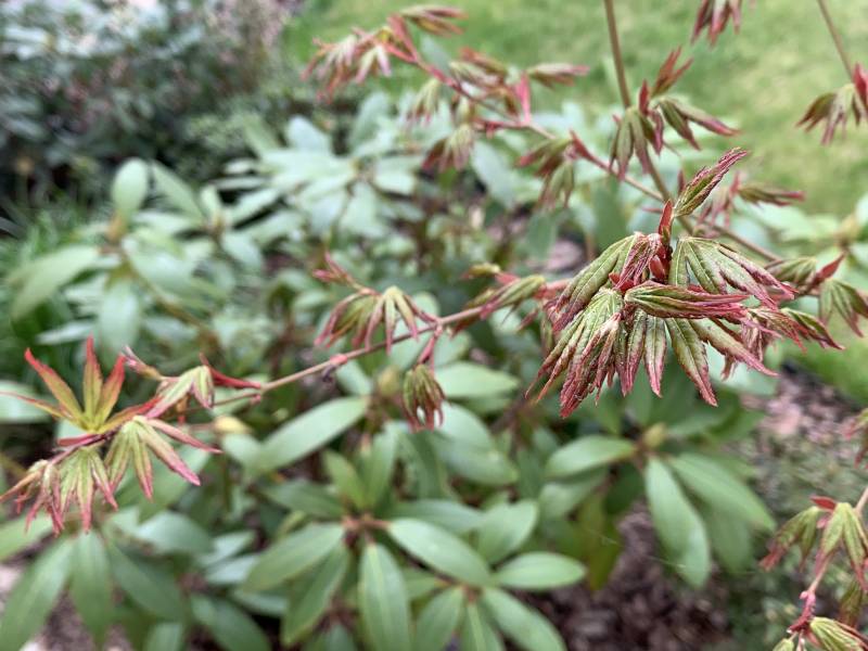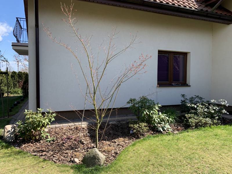 Na wrzosowisku posadziłam klona Katsurę. Kupiłam go chyba tylko z pazerności., stał w poczekalni, a ja rozmyslalam. Nie cierpie takich akcji, ze mam roślinę i latam z nią dookoła domu, oj zła na się ie byłam, ale może nie wybrałam najgorzej..